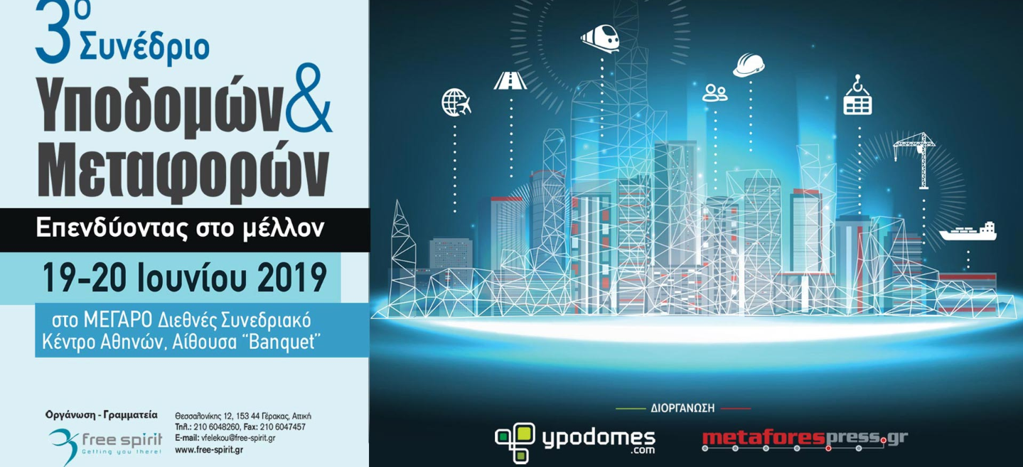 Οι συνδιοργανώτριες ιστοσελίδες ypodomes.com και metaforespress.gr προχωρούν στη διεξαγωγή του 3ου Συνεδρίου Υποδομών και Μεταφορών το οποίο θα πραγματοποιηθεί στις 19 και 20 Ιουνίου στο Μέγαρο Διεθνές Συνεδριακό Κέντρο Αθηνών.