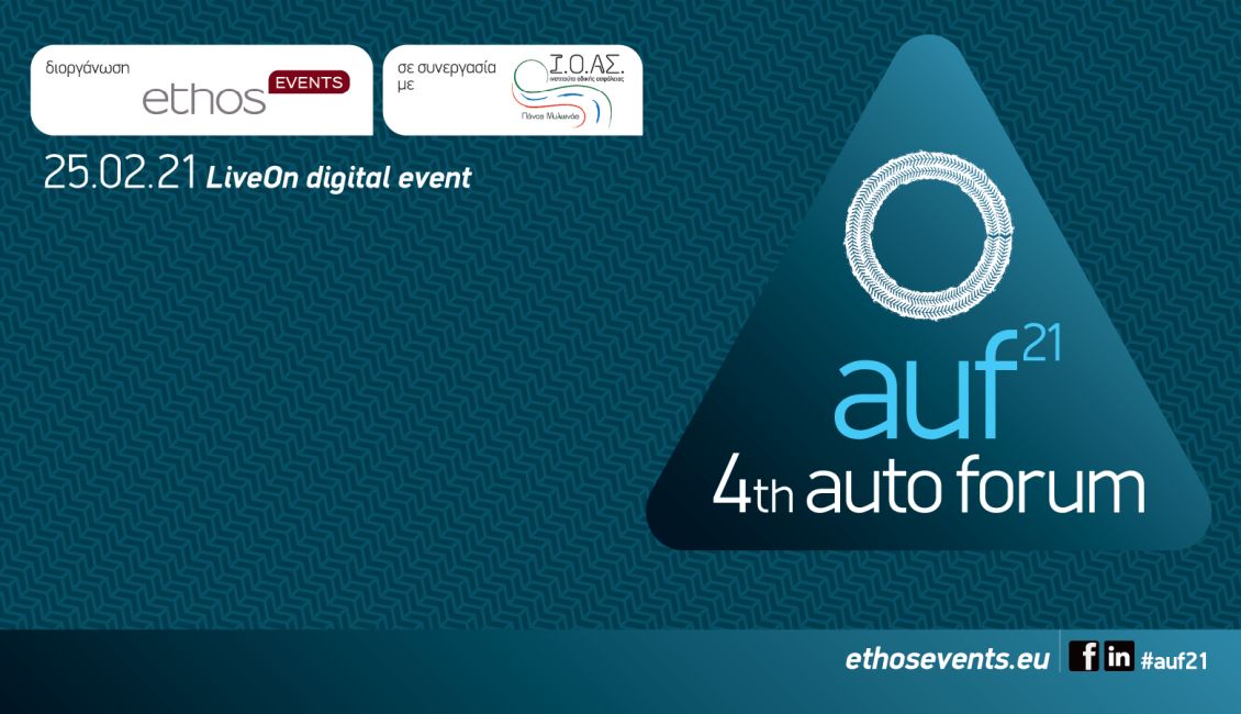 Η ethosEVENTS σε συνεργασία με το Ινστιτούτο Οδικής Ασφάλειας (ΙΟΑΣ) «Πάνος Μυλωνάς», το οικονομικό και επιχειρηματικό portal banks.com.gr και το περιοδικό ΧΡΗΜΑ διοργανώνουν για 4η χρονιά το Auto Forum με τίτλο: «Εξηλεκτρισμός».