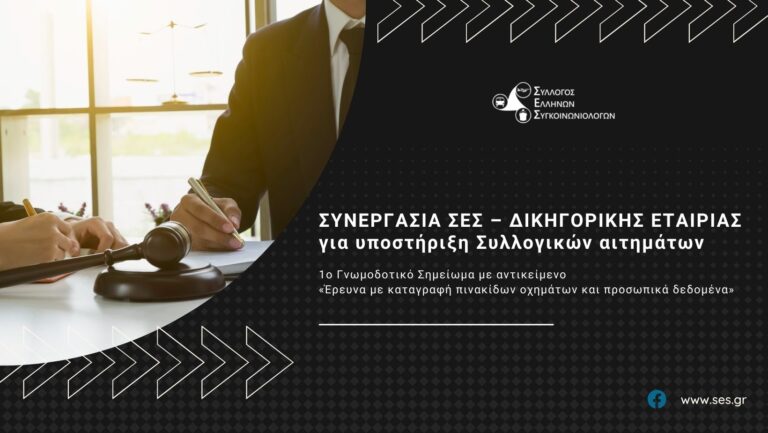 Ο ΣΕΣ στο πλαίσιο της διαρκούς υποστήριξης των μελών του και δεδομένων των σημαντικών νομικής φύσης ζητημάτων που αντιμετωπίζουν συνάδελφοι, ξεκινά συνεργασία με δικηγορική εταιρία (ΚΡΕΜΑΛΗΣ - Δικηγορική Εταιρία) με σκοπό την παροχή νομικών υπηρεσιών για θέματα που απασχολούν συλλογικά τα μέλη του.