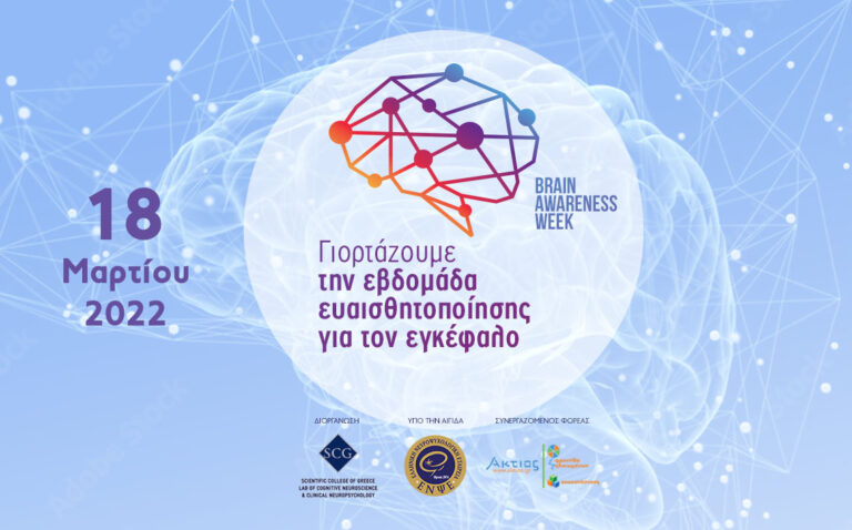 Το SCG – Εργαστήριο Νοητικής Νευροεπιστήμης και Κλινικής Νευροψυχολογίας διοργανώνει εκδήλωση στο πλαίσιο της εβδομάδας Ευαισθητοποίησης για τον εγκέφαλο, την Παρασκευή 18 Μαρτίου 2022.
