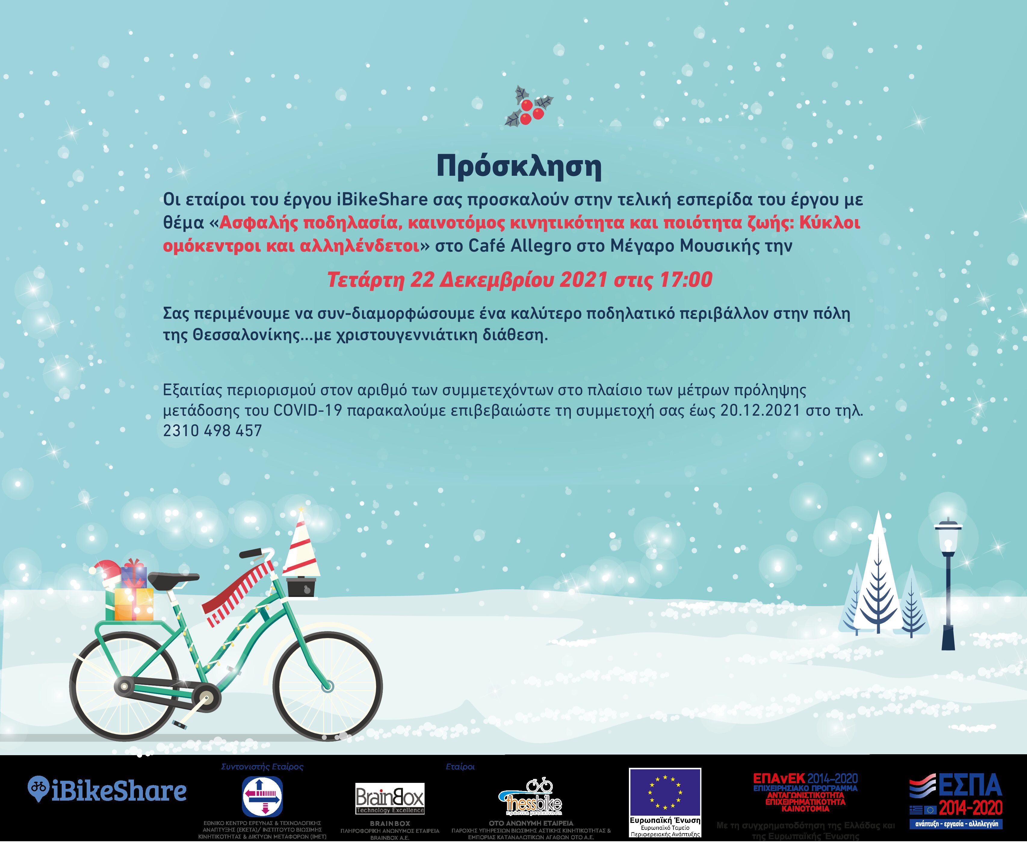 Οι εταίροι του έργου iBikeShare σας προσκαλούν στην τελική εσπερίδα του έργου με θέμα “Ασφαλής ποδηλασία, καινοτόμος κινητικότητα και ποιότητα ζωής: Κύκλοι ομόκεντροι και αλληλένδετοι” που θα γίνει την Τετάρτη 22 Δεκεμβρίου 2021 στις 17:00, στο Cafe Allegro στο Μέγαρο Μουσικής στη Θεσσαλονίκη. Στην εσπερίδα εκπροσωπώντας τον ΣΕΣ θα συμμετέχει ο Γενικός Γραμματέας, Θ. Τσιάνος. […]