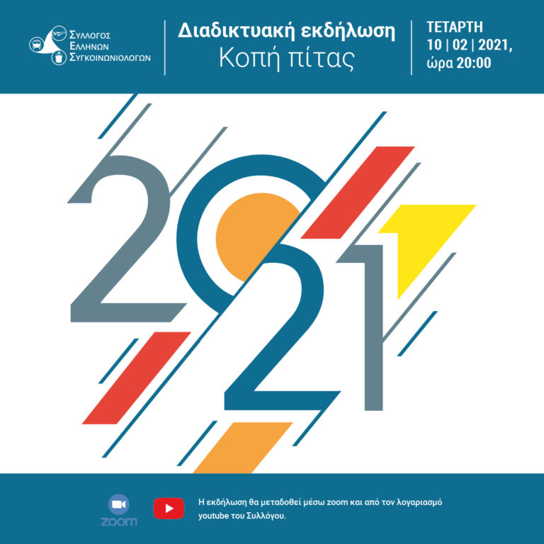 Το ΔΣ του ΣΕΣ προσκαλεί τα μέλη και τους φίλους του Συλλόγου την Τετάρτη 10 Φεβρουαρίου στις 20:00 σε διαδικτυακή εκδήλωση που θα περιλαμβάνει και την ετήσια κοπή της πίτας