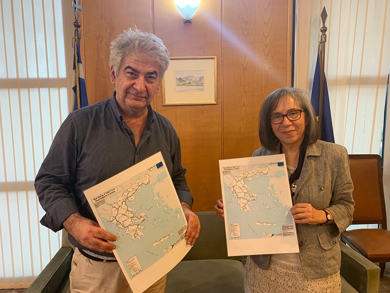 Η Πρόεδρος του Ινστιτούτου, κυρία Βασιλική Δανέλλη-Μυλωνά, και στελέχη του Ι.Ο.ΑΣ.«Πάνος Μυλωνάς», παρέδωσαν στο Υπουργείο Υποδομών και Μεταφορών τους χάρτες επικινδυνότητας του οδικού δικτύου από το Ευρωπαϊκό συγχρηματοδοτούμενο έργο SLAIN.